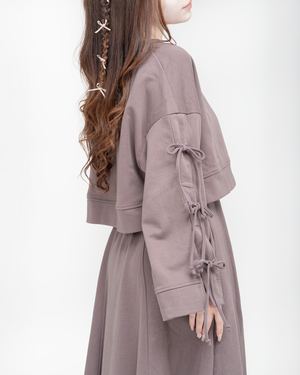 The Reverie Sweater is a lovely expression of considerate design, featuring beautifully crafted bows that cascade down the dramatic wide sleeves. These delicate ties offer a touch of personalization, creating a silhouette that is both romantic and effortlessly chic. Crafted from premium, soft-touch cotton, this piece is designed to bring a touch of graceful ease to your quietest moments.